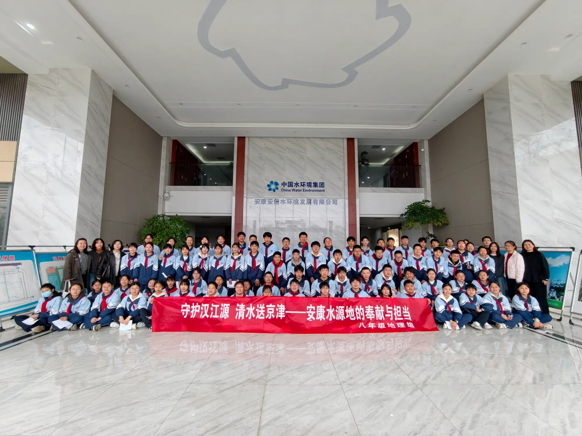 第三十九届“中国水周”之际,围绕“国家水网 世纪画卷”主题,我校团委联合八年级地理组开展“守护汉江源,清水送京津——安康水源地的奉献与担当”研学活动,带领学生走进安康江南再生水厂,将乡土地理学习与节水护水教育融入实践,让课本知识落地,让生态理念入心。
