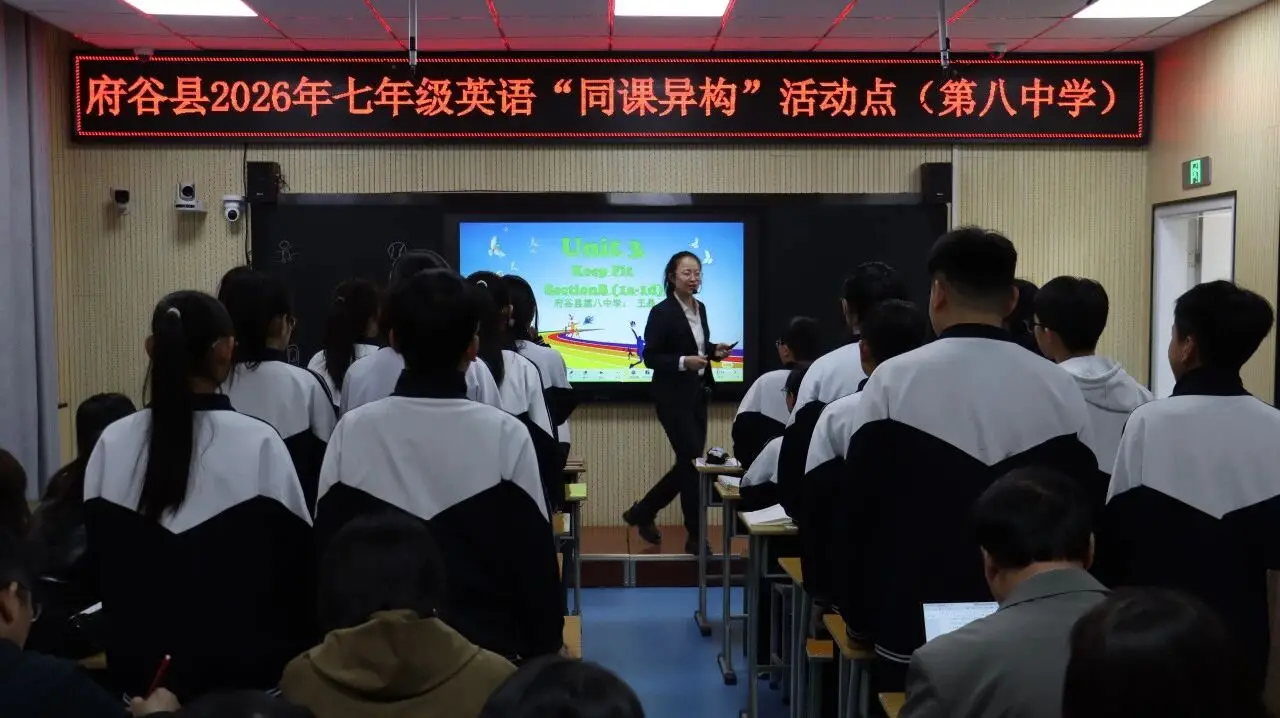 4月3日,府谷县2026年七年级数学、英语学科教师专业能力提升培训活动在第八中学成功举办。本次活动由县教体局主办、县教研室承办,以“同课异构”为核心载体,邀请全国知名教育专家与县内教学能手同台授课、碰撞思路,助力县域初中教师精进教学方法、提升专业素养。县教体局党组成员王振利全程参与活动并指导。