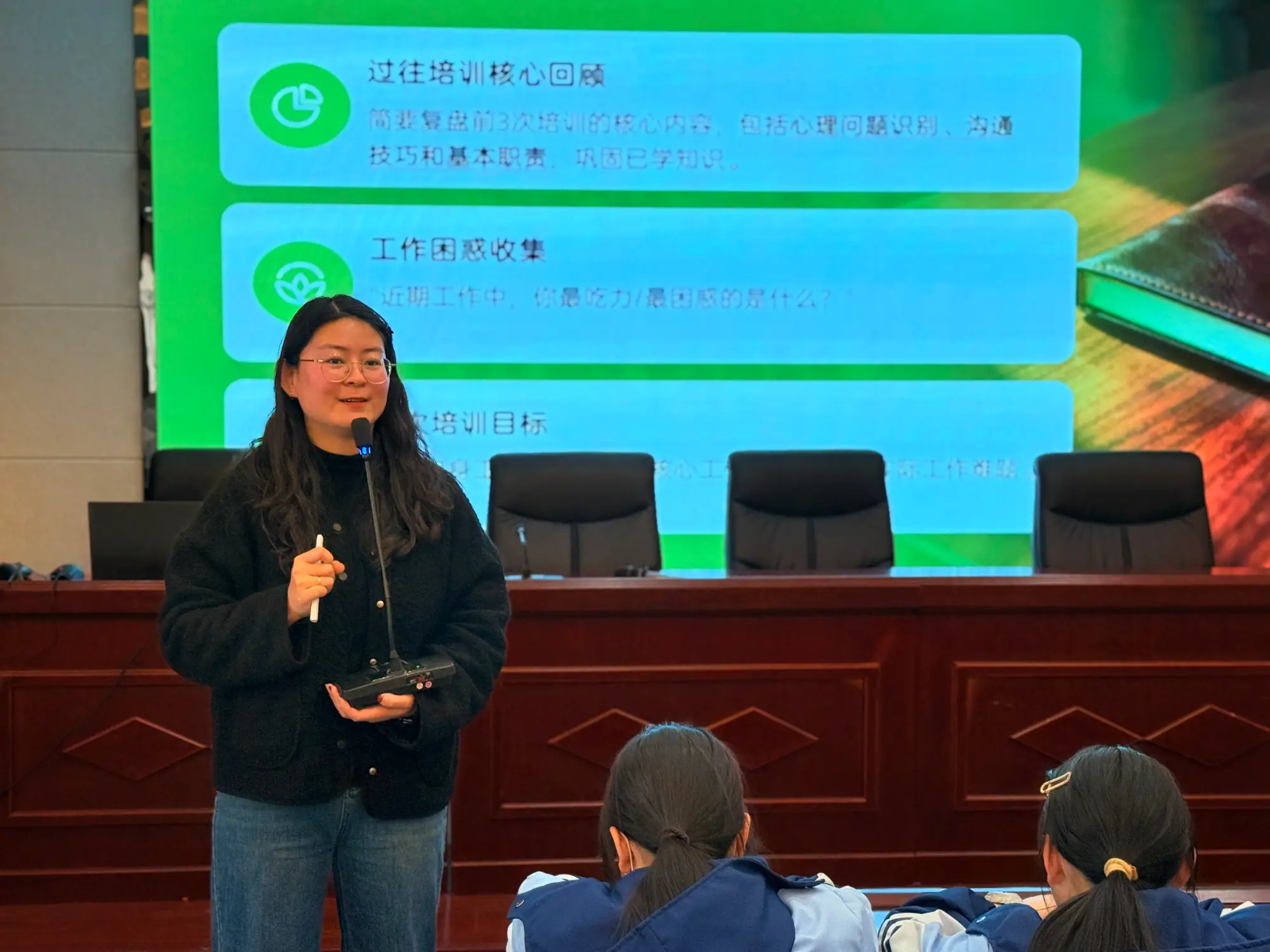 培训伊始,王文老师简要复盘前三次培训核心,收集阳光委员日常工作中的困惑,明确本次培训“调整自身状态、升级履职能力、解决实际难题”的核心目标。