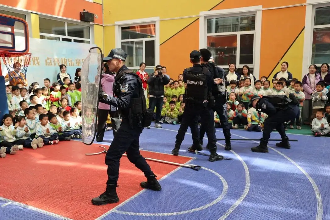 为筑牢校园安全防线,守护幼儿健康成长,3月19日下午,神木市公安局特巡警大队走进第五幼儿园,开展“金盾护苗”主题安全宣传活动,为孩子们送上满满的安全感。应急处置演练、装备展示、擒敌拳表演……一场生动又硬核的安全教育课,在幼儿园里精彩上演。