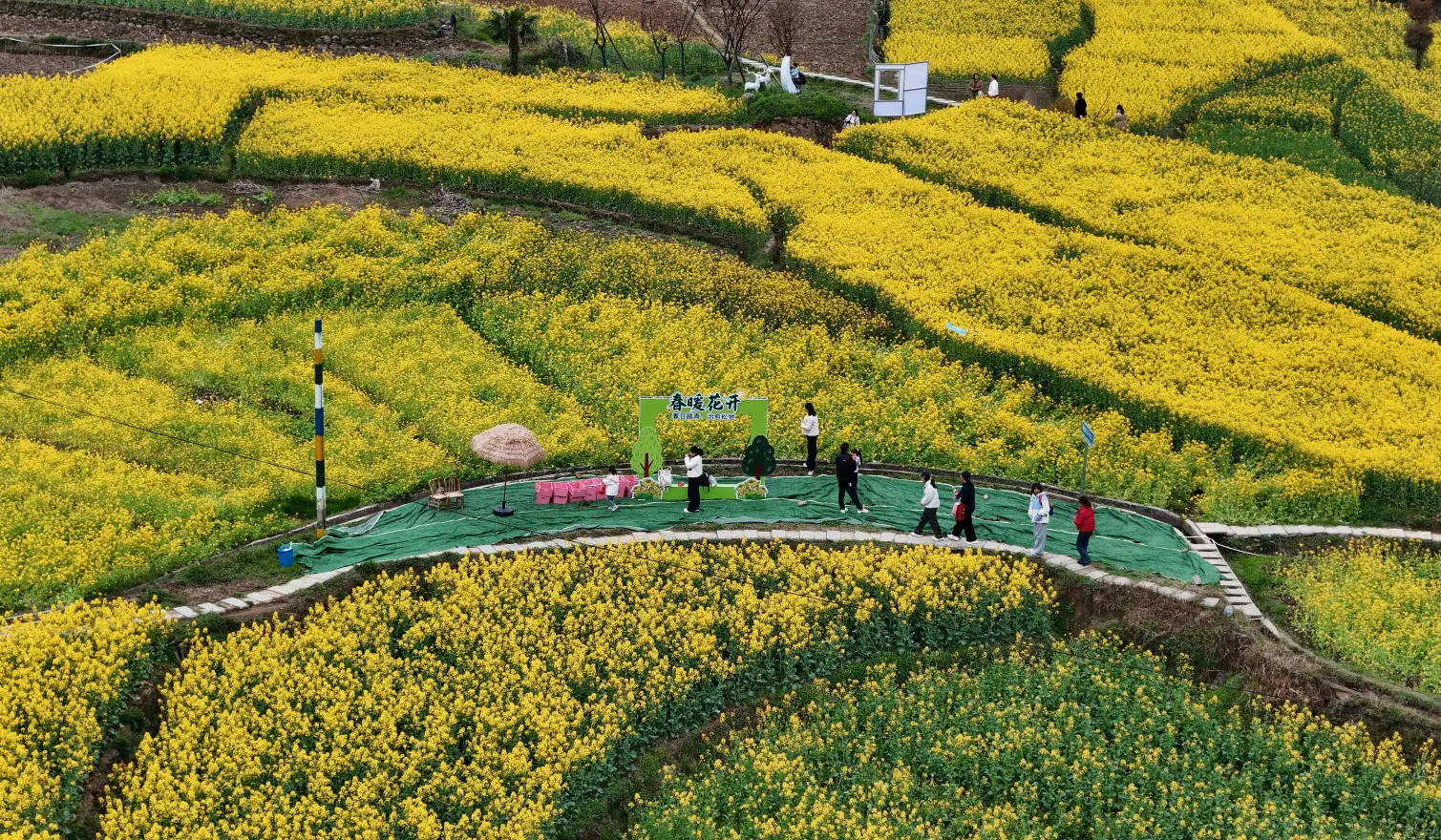 放眼望去,石羊栈道花海观景区域热闹非凡。花田烟火·田园美食汇上,花田烧烤、特色小吃、围炉煮茶等体验点位前人头攒动,游客们一边欣赏梯田油菜花海,一边品尝巴山本土风味美食,尽享“赏花+美食”的休闲度假体验。花田好物·农特产展销区内,云巅巴山系列农土特产品琳琅满目,吸引游客纷纷选购。花田捉鸡·田园欢乐赛更是欢声笑语不断,游客们穿梭花田间体验别样趣味......