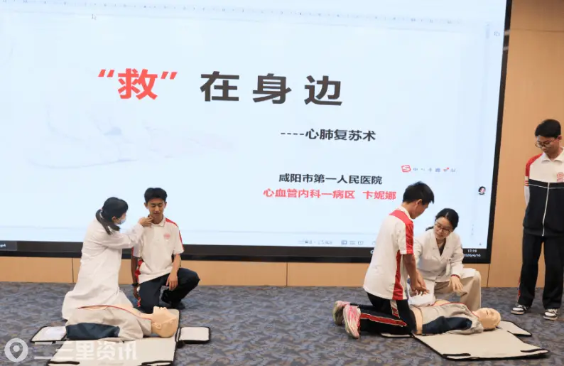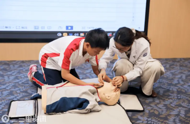 心血管一病区主治医师卞妮娜通过理论授课与模拟人实操,指导学生掌握胸外按压、人工呼吸等关键急救技能。现场气氛热烈,同学们争相上前体验。