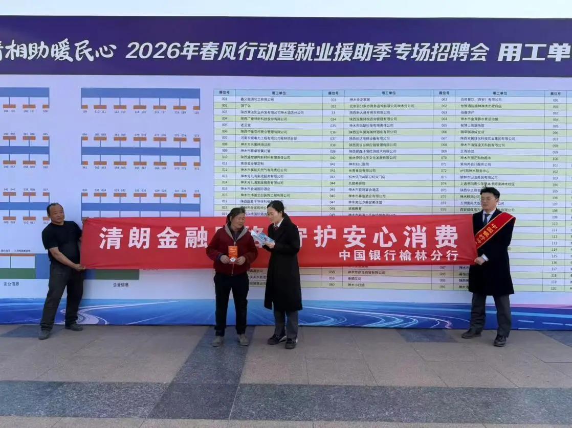中行神木市支行营业部在2026年3·15国际消费者权益日来临之际,紧扣“爱征信、知政策、护权益”主题,组织骨干员工走进百荟国贸商圈及周边商铺,恰逢2026年春风行动暨就业援助季专场招聘会,开展了征信知识与金融权益保护专题传活动,切实把诚信理念、惠民政策与维权知识送到群众身边。