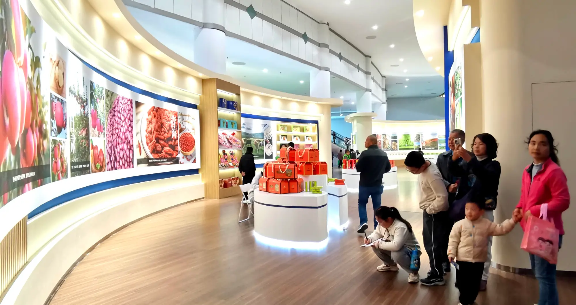 农高会A馆7000平米展区同步举办名特优新农产品展与中国好苹果常年展,搭建优质农产品展示展销通道;