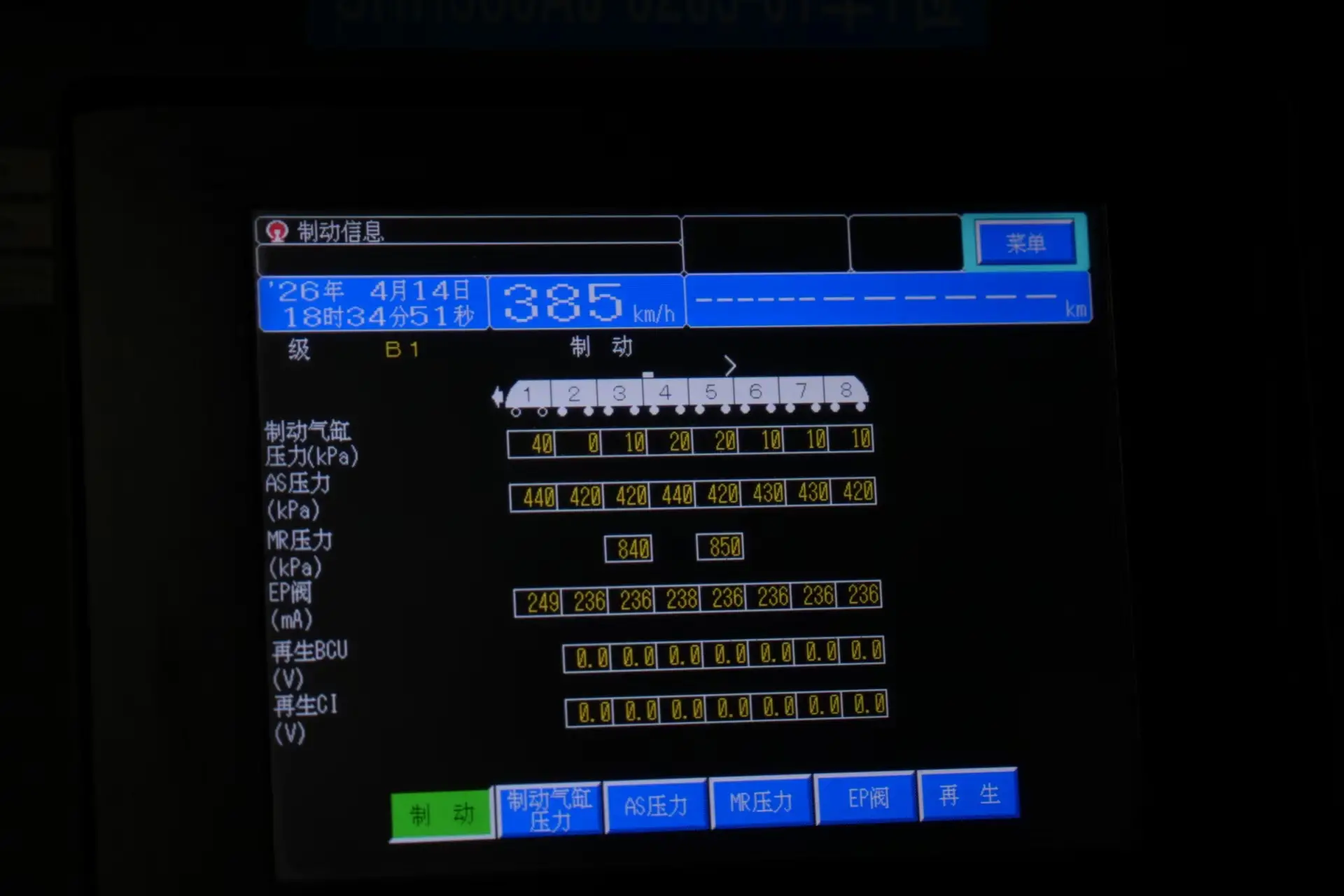 “385公里时速意味着列车每秒行驶超100米,控车难度极高。此次测试采用CRH380AJ-0203型综合检测列车,运行过程中ATP安全防护设备隔离,速度完全由司机人工精准操控,制动时机误差控制在1秒以内。列车搭载的各类检测设备实时采集轨道几何、弓网状态、信号传输、噪声振动等关键数据,为线路评估提供详实依据。”西安铁路局西安机务段指导司机姚远说。