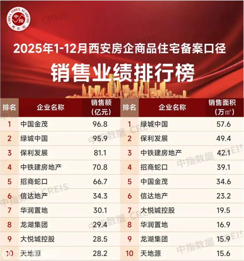 金茂西安2025年业绩排行榜图,来源于:中指研究院