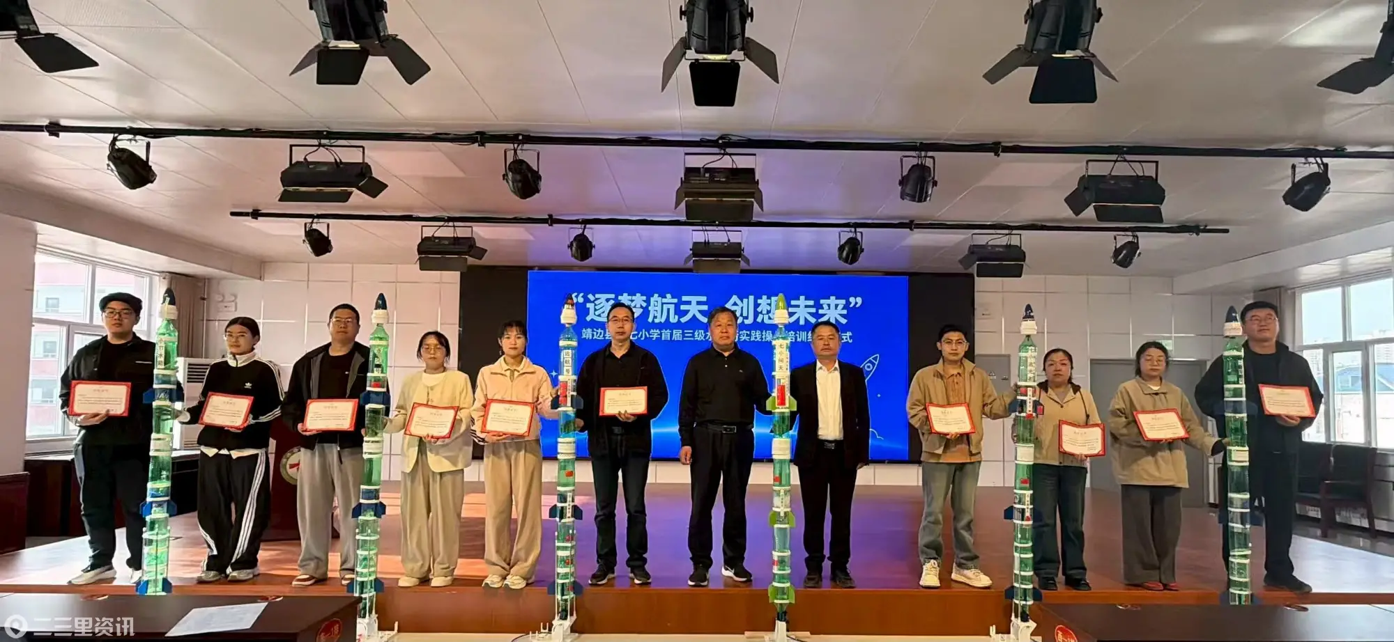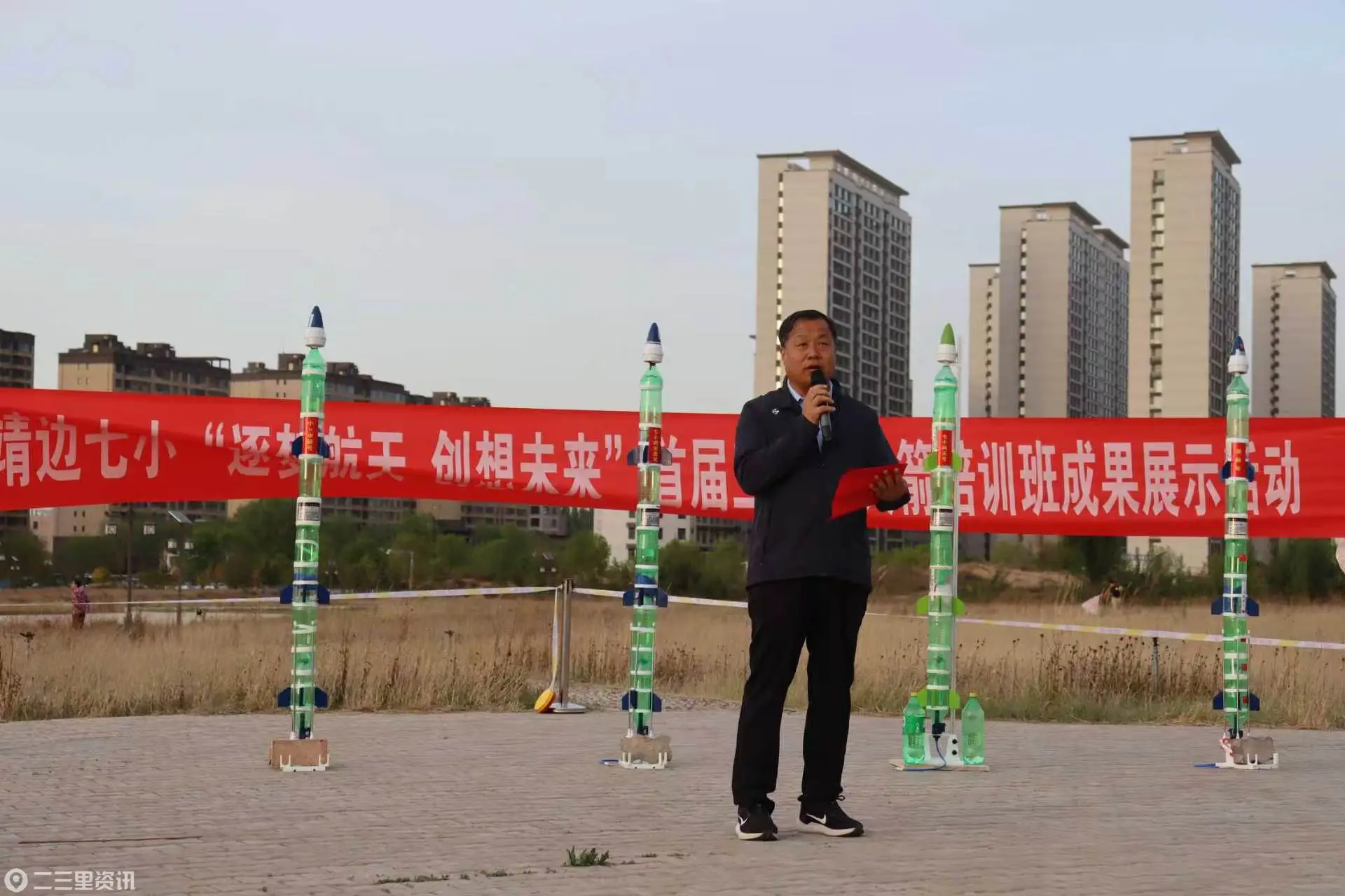 作为本次科技周的重点内容,首期三级水火箭教师培训班同步开展,着力打造一支能开展航天科技校本课程的骨干教师队伍。培训分为理论学习和实操培训两个阶段。4月27日,学校在靖边县新区运动公园广场组织了三级水火箭试发射实操活动,参训教师将培训成果转化为实践能力,在规范操作中直观理解水火箭升空的物理原理,也为学生呈现了一场生动的航天科技实践演示。全面掌握三级水火箭的组装制作、调试方法及安全规范,为后续指导学生开展科技实践活动奠定了坚实基础。